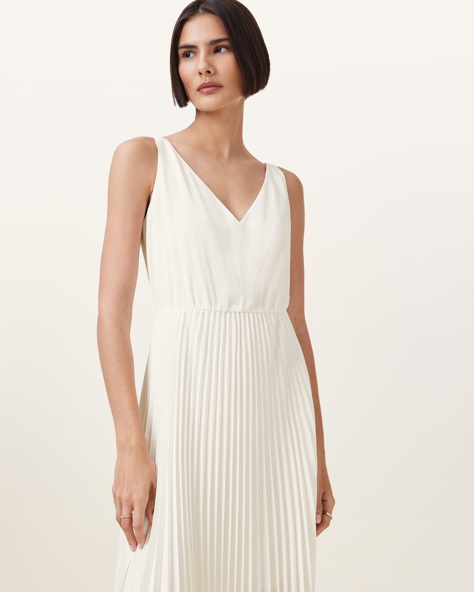 Two-in-one styles have become our thing. The Leia Harley dress is a fresh take featuring a flattering V-neck pleated dress with adjustable straps, paired with a sleeveless tank that adds structure. The tank is designed with a dropped shoulder creating a modern silhouette and finished with ribbed detailing.